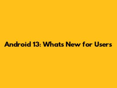 Android 13: What's New For Users