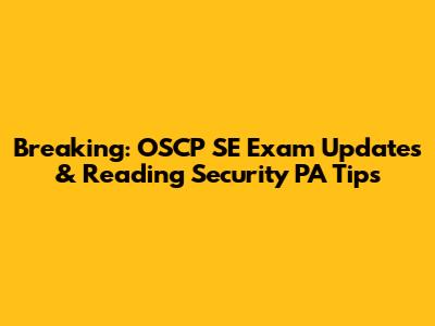 Breaking: OSCP SE Exam Updates & Reading Security PA Tips