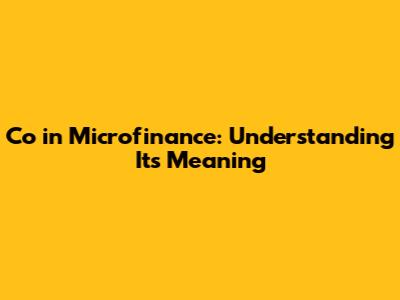 Co In Microfinance: Understanding Its Meaning
