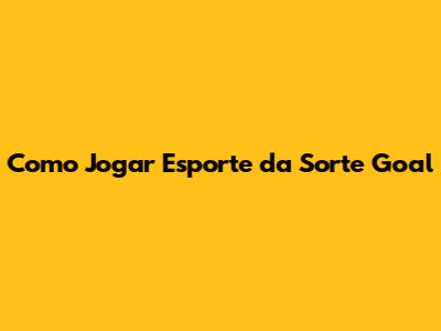 Como Jogar Esporte Da Sorte Goal