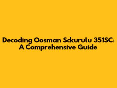 Decoding Oosman Sckurulu 351SC: A Comprehensive Guide