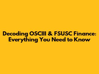 Decoding OSCIII & FSUSC Finance: Everything You Need To Know