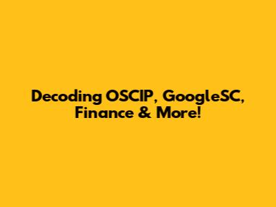 Decoding OSCIP, GoogleSC, Finance & More!