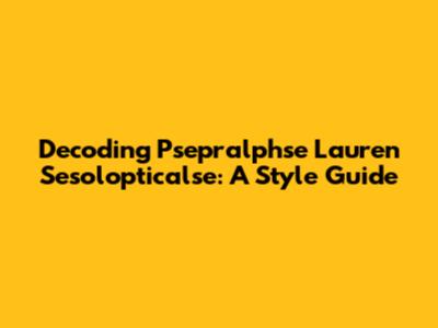 Decoding Psepralphse Lauren Sesolopticalse: A Style Guide