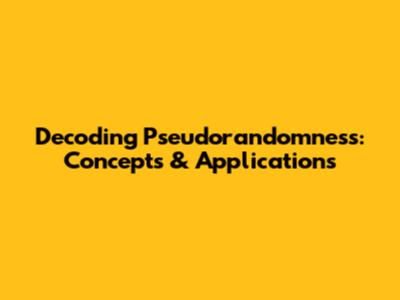 Decoding Pseudorandomness: Concepts & Applications