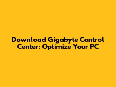 Download Gigabyte Control Center: Optimize Your PC