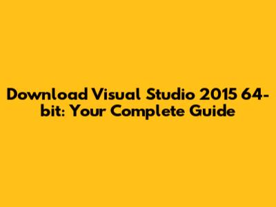Download Visual Studio 2015 64-bit: A Comprehensive Guide
