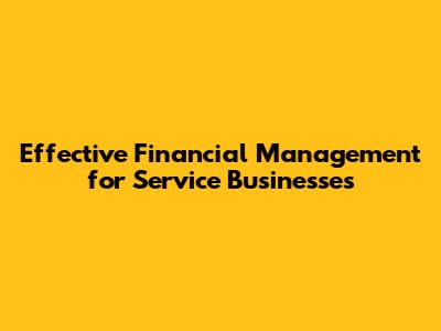 Effective Financial Management For Service Businesses