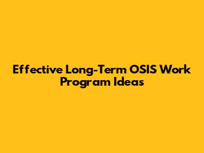 Effective Long-Term OSIS Work Program Ideas