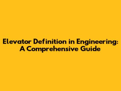 Elevator Definition In Engineering: A Comprehensive Guide