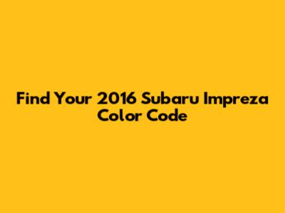 Hey guys! Ever been in that frustrating situation where you need to touch up a scratch or ding on your 2016 Subaru Impreza, but you have no clue what paint color you actually need? It's a common problem, and trust me, getting the color code wrong can lead to a patch job that looks worse than the original damage. Don't sweat it, though! This guide is here to help you pinpoint the exact 2016 Subaru Impreza color code so you can get your ride looking sharp and seamless again. We'll dive deep into where to find this crucial piece of information, what it looks like, and why it's so darn important. So, grab a coffee, and let's get your Impreza looking factory fresh!