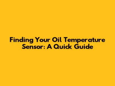 Finding Your Oil Temperature Sensor: A Quick Guide