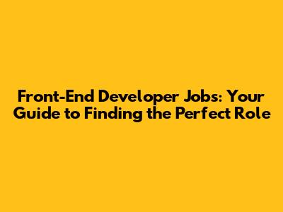 Front-End Developer Jobs: Your Guide To Finding The Perfect Role