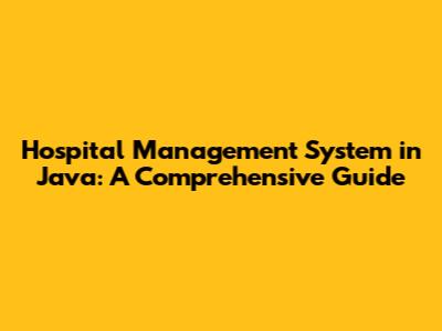 Hospital Management System In Java: A Comprehensive Guide