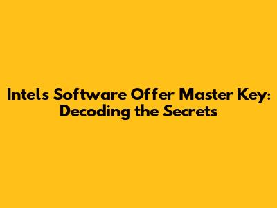 Intel's Software Offer Master Key: Decoding The Secrets