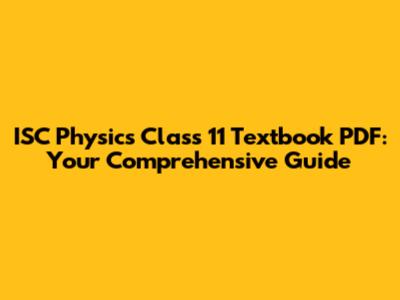ISC Physics Class 11: Download Your Textbook PDF