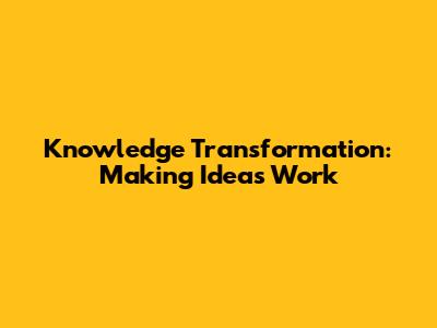 Knowledge Transformation: Making Ideas Work