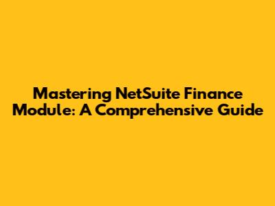 Mastering NetSuite Finance Module: A Comprehensive Guide