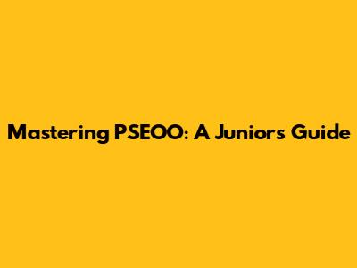 Mastering PSEOO: A Junior's Guide