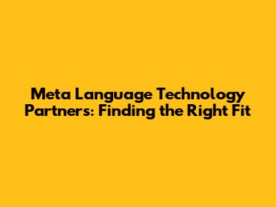 Meta Language Tech Partners: Who To Trust?