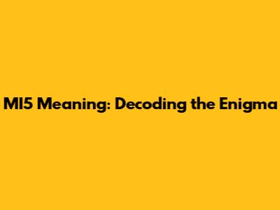 MI5 Meaning: Decoding The Enigma
