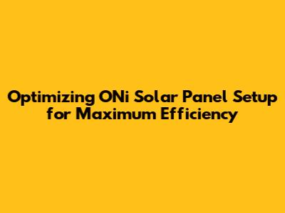 Optimizing ONi Solar Panel Setup For Maximum Efficiency