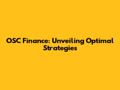 OSC Finance Explained: Your Guide To Optimal Strategies