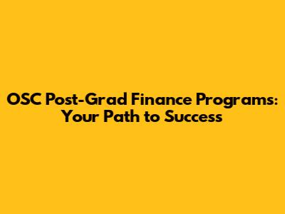 OSC Post-Grad Finance Programs: Your Path To Success
