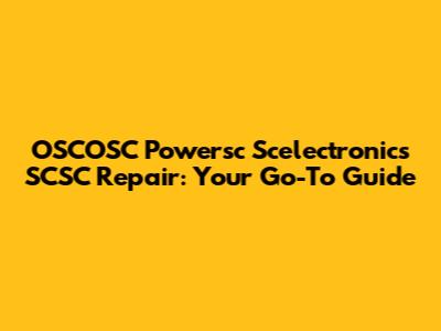 OSCOSC Powersc Scelectronics SCSC Repair: A Complete Guide