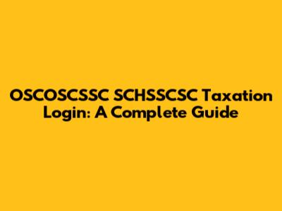 OSCOSCSSC SCHSSCSC Taxation Login: A Complete Guide