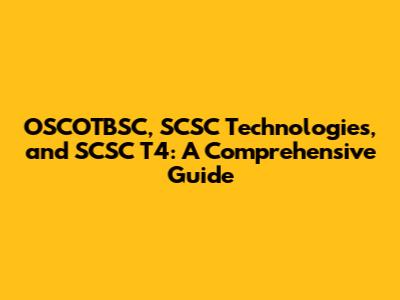 OSCOTBSC, SCSC Technologies, And SCSC T4: A Comprehensive Guide