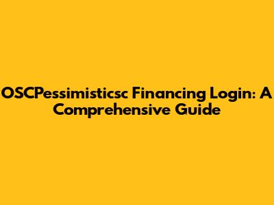 OSCPessimisticsc Financing Login: A Comprehensive Guide