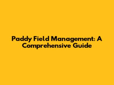 Paddy Field Management: A Comprehensive Guide