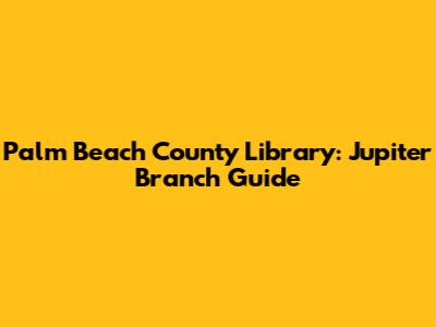 Palm Beach County Library: Jupiter Branch Guide