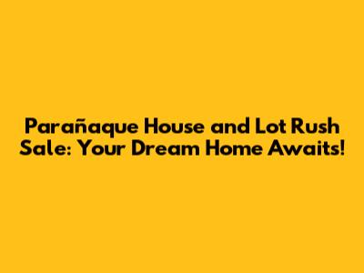 Parañaque House And Lot Rush Sale: Your Dream Home Awaits!