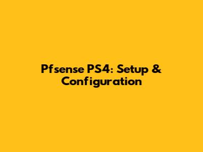 Pfsense PS4: Setup & Configuration