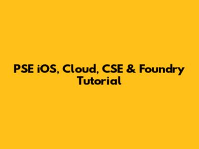 PSE IOS, Cloud, CSE & Foundry Tutorial