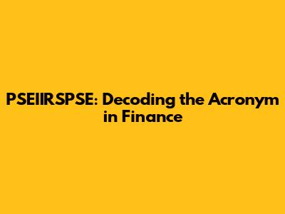 PSEIIRSPSE: Decoding The Acronym In Finance