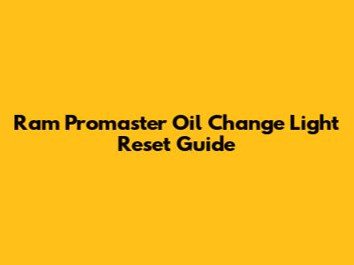 Ram Promaster Oil Change Light Reset Guide