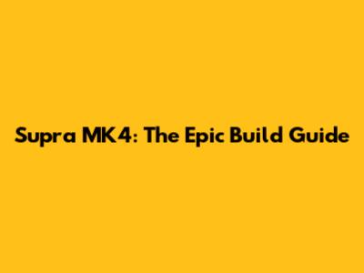 Supra MK4: The Epic Build Guide