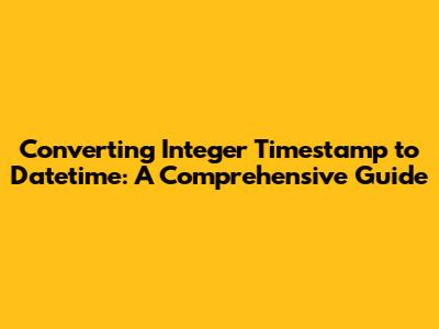 Converting integer timestamps to datetime is a fundamental task for anyone who works with time-based data. By understanding the basics, knowing the syntax for different programming languages, and avoiding common pitfalls, you can accurately and reliably convert timestamps. Remember to always be mindful of time zones, units, and formatting to get the results you expect. Armed with this knowledge, you are now well-equipped to handle those pesky integer timestamps and bring time to life in your applications. Go forth and code! I hope this helps! If you have any further questions, feel free to ask. Happy coding, guys!