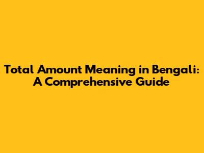 Total Amount Meaning In Bengali: A Comprehensive Guide