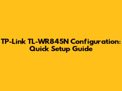 TP-Link TL-WR845N Configuration: Quick Setup Guide