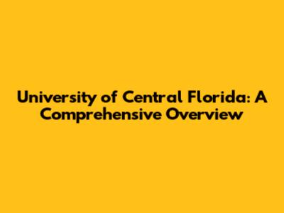 UCF: A Comprehensive Overview Of The University