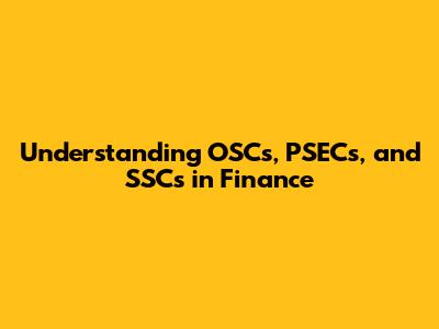 Understanding OSCs, PSECs, And SSCs In Finance