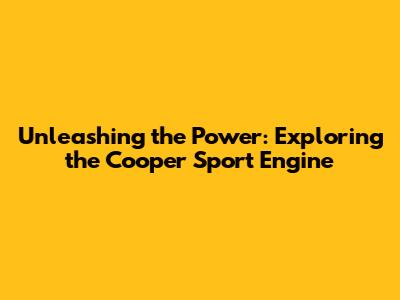 Unleashing The Power: Exploring The Cooper Sport Engine